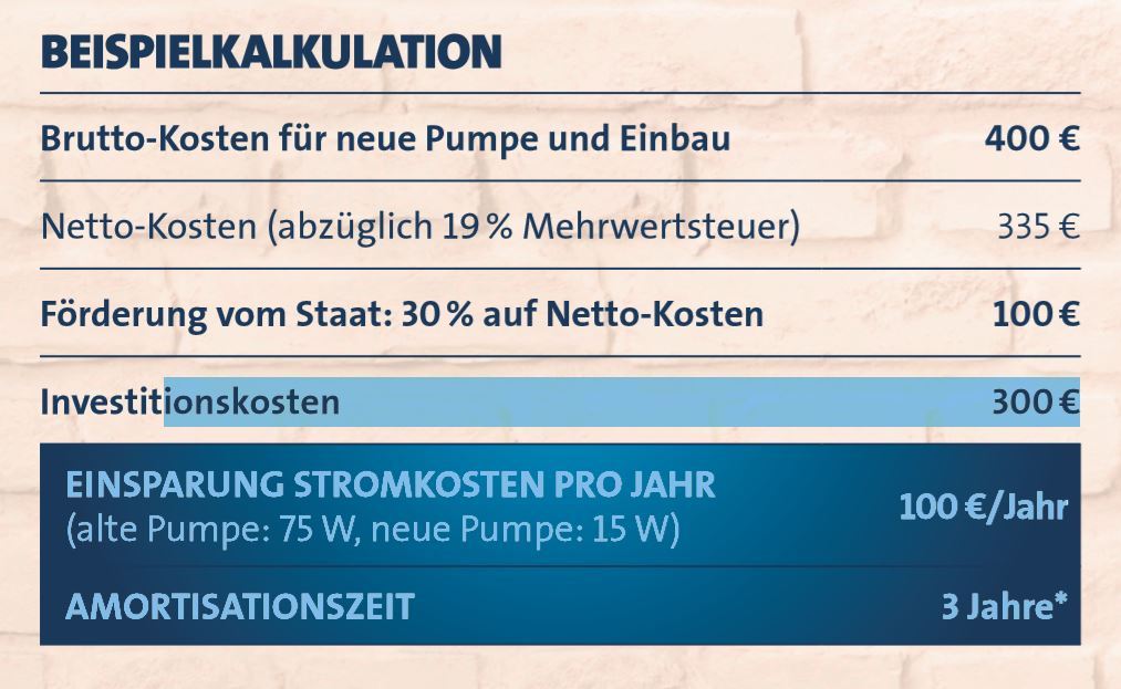 So können gleich mehrere Pumpen für diesen Austausch in Frage kommen. Die auszutauschenden Heizungspumpen müssen jedoch mindestens zwei Jahre alt sein.