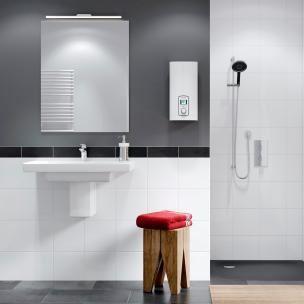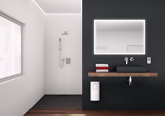 Die elektronisch geregelten Geräte bestehen aus einem Einlauftemperatursensor, einem Auslauftemperatursensor und einem Durchflusssensor. So gewährleistet der Durchlauferhitzer eine konstante und gradgenaue Auslauftemperatur. Wenn das Gerät in Ausnahmefällen mit maximaler Leistung arbeitet, zum Beispiel bei extrem niedrigen Zulauftemperaturen im Winter, kann der Nutzer über die Armatur die Wassermenge und damit seine Wunschtemperatur regeln.