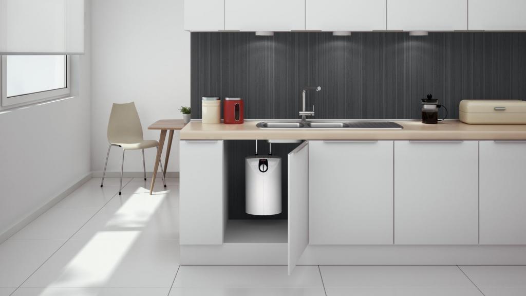 Als leistungsstarke und kompakte Warmwassergeräte bilden Kleinspeicher unauffällig eine ständige Wasserquelle. Gerade dort, wo häufig kleinere Mengen benötigt werden, spielen sie mit einem Volumen von 5 bis 15 Litern ihre wirtschaftlichen Stärken besonders aus. Sie werden mit einem 230 V-Anschluss betrieben. Durch die hochwirksame Isolierung wird das warme Wasser sehr energiebewusst ständig bereitgehalten.
